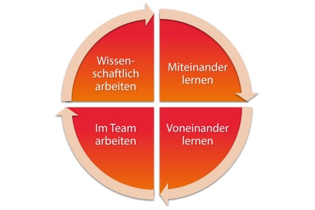 In interprofessionellen Formaten wird auf das gemeinsame, fächerübergreifende Lernen und der Kooperation besonders geachtet. Teilnehmer*innen aus den verschiedenen Studiengängen arbeiten aktiv zusammen, um gegenseitiges Verständnis, Teamfähigkeit und gemeinsame Entscheidungsfindung zu stärken. Dieses gemeinsame Lernen fördert die Entwicklung von Synergien, die die Qualität der Patientenversorgung verbessern sollen. Besonders betont werden dabei interprofessionelle Kompetenzen wie Kommunikation, Respekt für die Rollen anderer sowie das Teilen von Verantwortung.