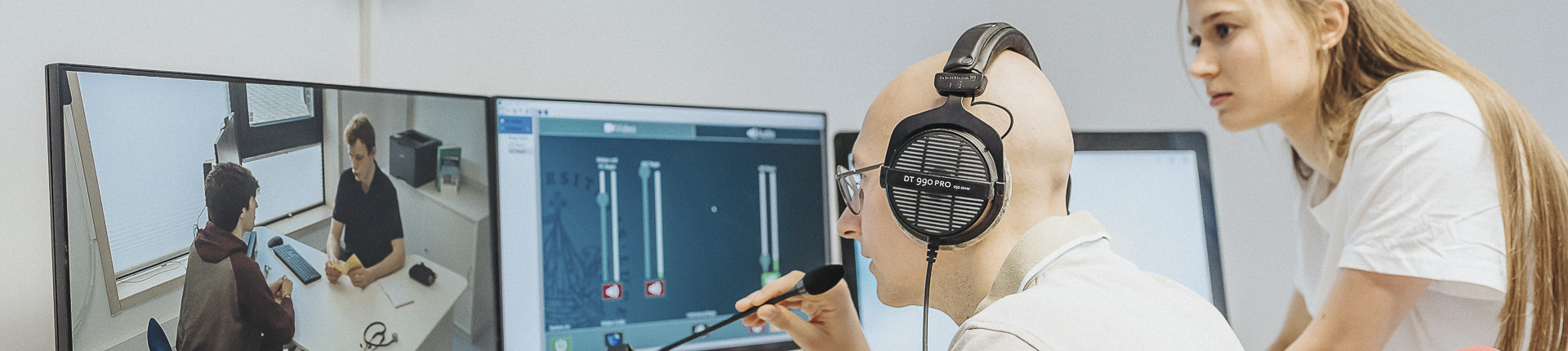 Interaktive Unterrichtseinheiten in Kleingruppen ermöglichen es den Studierenden, Kommunikationstechniken und -modelle selbst anzuwenden, zu reflektieren und ein konstruktives Feedback einzuholen. Kernstück der interaktiven Unterrichtseinheiten sind Kommunikationstrainings mit Simulationsdarsteller*innen.